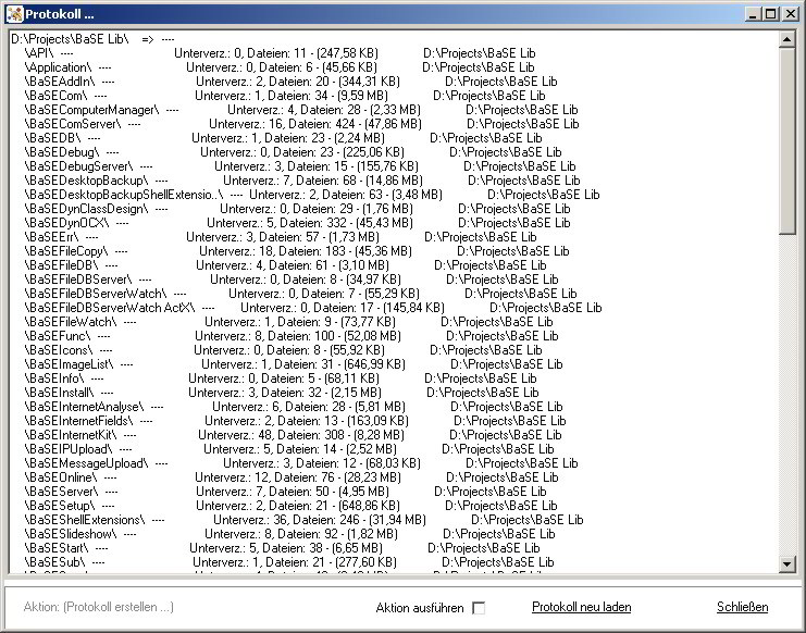 - Protokollerstellung, sowie Prüfung und Deaktivierung von Dateien bzw. Verzeichnissen vor der Aktion.