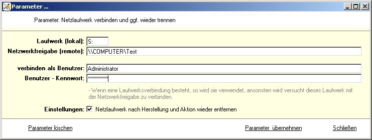 Vorteil: Netzlaufwerke sind nur während des Vorgangs verfügbar.