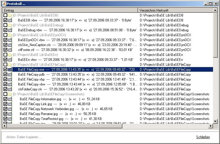 , z.B. durch gesperrte Dateien, gehören der Vergangenheit an. "BaSE FileCopy" protokolliert jeden