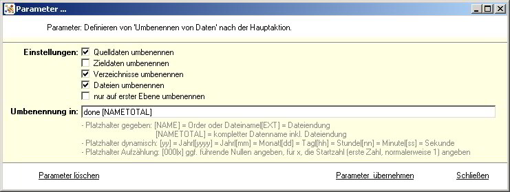- Änderung von Attributen oder Umbenennen von Dateien bzw. Verzeichnissen in Verbindung mit der Aktion Kopieren.