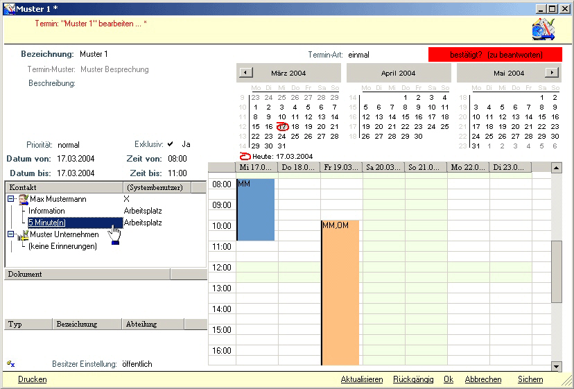 Beliebig viele Ressourcen (z.B. Auto, Besprechungsräume, Beamer, etc.) können dem Termin zugeordnet werden. |