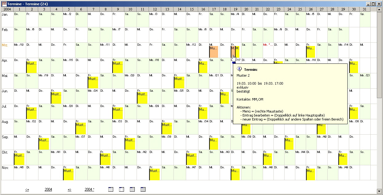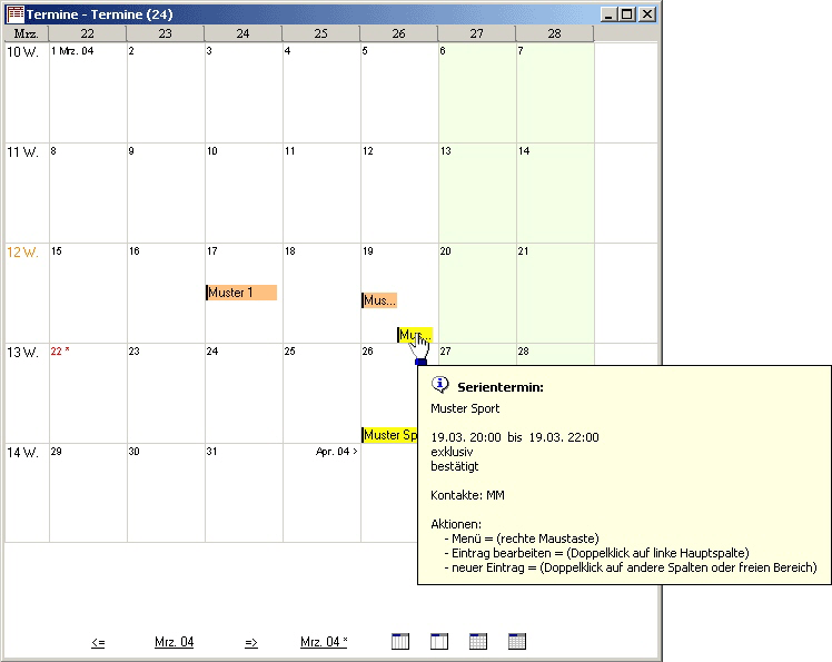 Bei der Terminansicht kann zwischen der Tages-, Wochen-, Monats- oder Jahreansicht gewählt werden. |